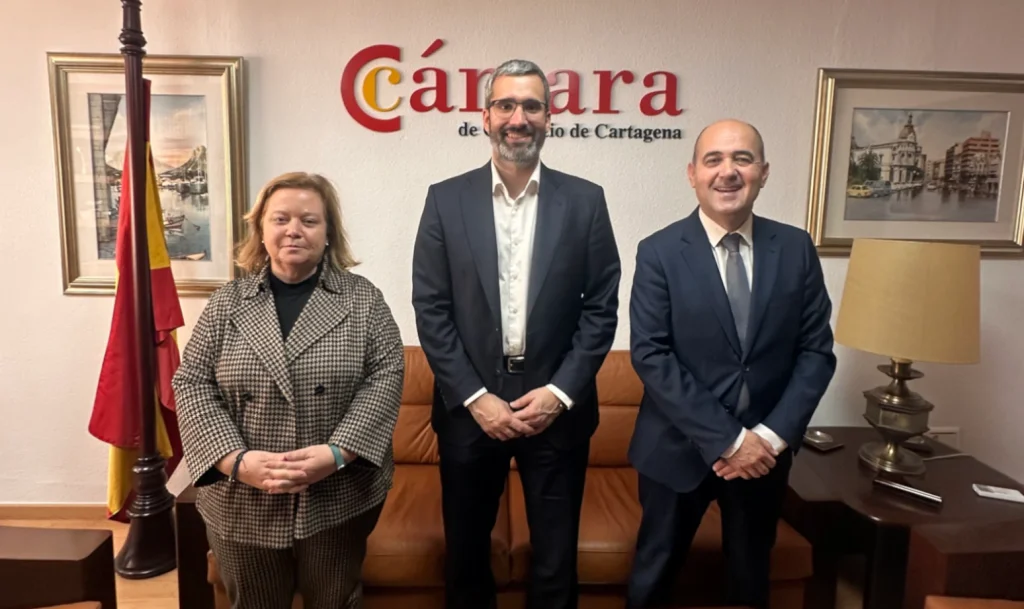 El delegado del Gobierno en la Región de Murcia, Francisco Lucas, visita la Cámara de Comercio de Cartagena para reforzar la colaboración institucional y empresarial