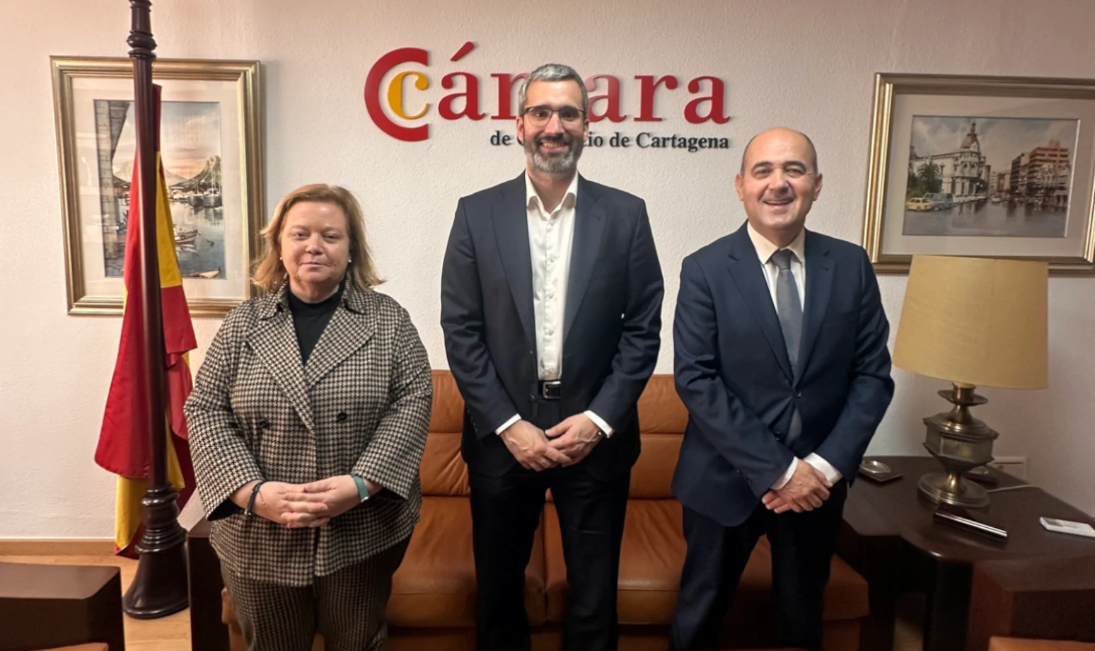 El delegado del Gobierno en la Región de Murcia ha realizado hoy una visita institucional a la Cámara de Comercio de Cartagena, donde ha mantenido una reunión de trabajo con el presidente de la Cámara Miguel Martínez y la presidenta de la Confederación Comarcal de Organizaciones Empresariales de Cartagena (COEC) Ana Correa.